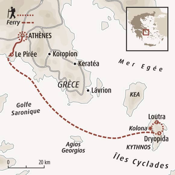 Un voyage combinant 4 jours de randonnées accompagnées sur l'île de Kythnos, et de 2 journées libres à Athènes pour découvrir par vous même les richesses culturelles de la capitale.