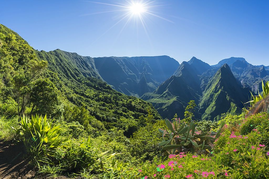 Parcourir l’île de la Réunion à pied, c’est s’immerger dans une géologie vivante sculptée par les volcans, l’eau et le temps, au fil de paysages spectaculaires qui se succèdent sans cesse. Ce circuit accessible invite les randonneurs à explorer les reliefs emblématiques de l’île dans une atmosphère tropicale et contrastée. Entre sentiers ombragés de forêt primaire, balades dans les cirques de Mafate et Cilaos, et crêtes offrant des vues sur les ravines profondes, chaque étape révèle la diversité des pitons et des panoramas volcaniques. La découverte du Piton de la Fournaise, volcan actif qui domine le paysage, constitue un temps fort. Les hébergements en gîtes et auberges ponctuent la semaine et permettent de combiner marche et détente, pour une découverte progressive et intense de La Réunion.