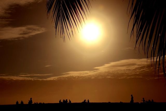 Après avoir présenté les conditions négatives, ne vous trompez pas : il y a aussi du soleil, s’en protéger en conséquence, surtout au volcan où l’ombre est inexistante.