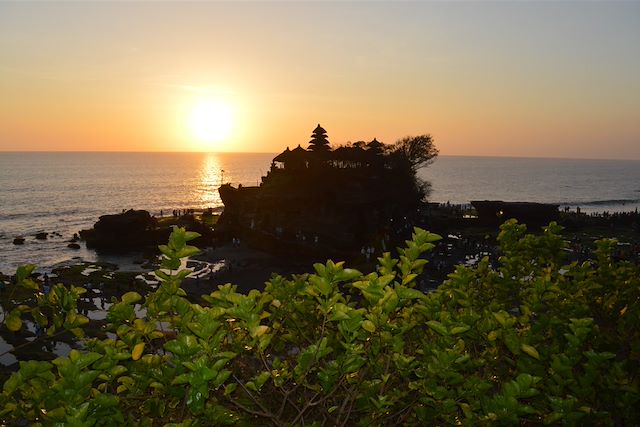 Nous partons pour une balade à vélo (principalement en descente), offrant de superbes panoramas sur les rizières environnantes. Nous atteignons une plage sur la côte ouest de Bali, où nous faisons une pause pour le déjeuner, avant de rejoindre le célèbre temple de Tanah Lot, perché sur un rocher accessible uniquement à marée basse. Selon la légende, le temple aurait été édifié au XVIe siècle par un prêtre nommé Nirartha, qui se serait reposé et endormi à cet endroit lors d’un voyage. Il aurait ensuite demandé aux pêcheurs de construire un temple ici pour honorer les dieux de la mer. Transfert vers Sanur et installation à l’hôtel.