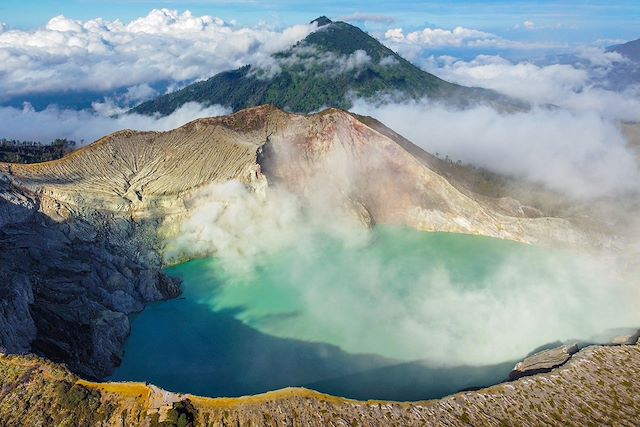 Vers minuit, nous rejoignons le point de départ de l’ascension du célèbre Kawah Ijen, le « cratère vert » en indonésien. De nuit, nous entamons la montée de ce volcan, environ une heure et demie de marche sur un sentier bien tracé, pour rejoindre le sommet du cratère. De là, nous amorçons une descente jusqu’au lac acide afin d’admirer le fascinant phénomène des flammes bleues. Ce spectacle rare, né de la réaction entre la roche soufrée et l’air nocturne, offre une vision presque irréelle. En raison des fortes émanations de gaz, nous ne restons que peu de temps sur place avant de remonter au sommet pour assister au lever du soleil. Dès l’aube, nous observons le travail impressionnant des mineurs de soufre qui extraient le précieux minerai au bord du plus grand lac acide du monde. Véritables forçats, ils transportent chaque jour près de 100 kg de soufre sur leur dos. Nous marchons le long de la crête du cratère avant d’emprunter le même sentier pour redescendre. Retour à l'hôtel avant notre transfert au port, puis traversée en ferry pour notre retour vers Bali. Route pour rejoindre Pemuteran, où nous profitons d'une fin de journée en bord de mer.