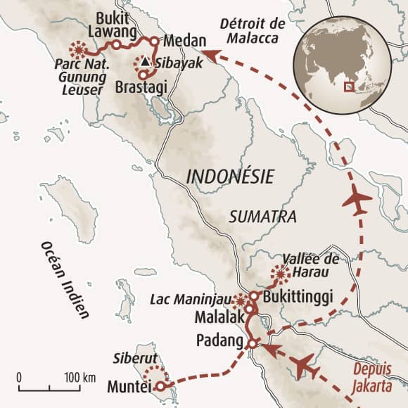 Vous serez également accompagnés d’un guide local pour certaines randonnées. Le tourisme est encore récent sur l’île de Sumatra et ne fonctionne que quelques mois par an. Nous vous remercions de faire preuve d’indulgence car ces guides locaux n’ont pas toujours l’expérience ou les habitudes professionnelles que l’on peut rencontrer dans d’autres pays d’Asie. Leur connaissance du terrain reste toutefois précieuse, et leur engagement contribue pleinement à la réussite du voyage.