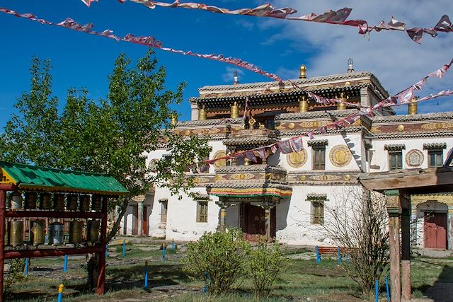 Nous quittons aujourd'hui nos hôtes et les merveilleux Monts Khangaï, et prenons la route de retour vers Oulan-Bator. Nous nous arrêtons à Kharkhoryn, située sur l'emplacement de l'ancienne capitale de Genghis Khan, la légendaire Karakorum, fondée en 1220. Nous visitons le monastère Erdenezuu, édifié à l’initiative de Zanabazar à la fin du 16ème siècle, souvent considéré comme l’un des plus beaux monastères du pays. Les 108 stupas qui l’entourent et les 3 temples principaux, d’une beauté remarquable, ont été miraculeusement épargnés des purges communistes de 1937. L’après-midi, nous visitons le musée local, consacré à l’histoire de l’ancienne capitale de l’Empire mongole.