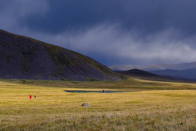 Au cœur des monts Khangaï, ce trek itinérant nous entraîne dans l’immensité des steppes et la vie des nomades. Conçu avec les éleveurs de yaks, il alterne randonnées et rencontres, avec le confort des nuits en yourte. Chaque jour nous parcourons vallées, rivières et forêts, respirant l’air pur et contemplant les panoramas à couper le souffle. Les nomades nous accueillent chaleureusement et nous initient à leurs activités quotidiennes, héritées d’un mode de vie ancestral préservé. Nous savourons l’atmosphère sauvage des lieux et collectionnons des images impérissables : yourtes fumantes au lever du jour, troupeaux paisibles, chevaux lancés au galop et nomades affairés devant leur yourte. Une immersion authentique où hospitalité, grands espaces et sérénité mongole se conjuguent à merveille.
