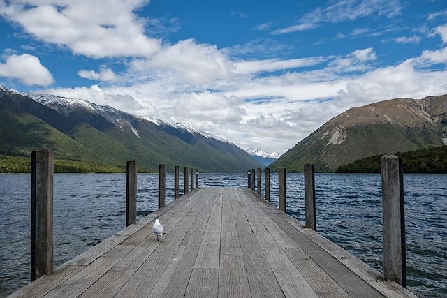 Aujourd'hui nous partons pour la région hors des sentiers battus des Nelson Lakes. Nous faisons une boucle autour du mont Robert pour arriver à un point de vue qui nous offre un superbe panorama sur le lac Rotoiti où nous marquerons une petite halte avant de prendre la route pour Picton.