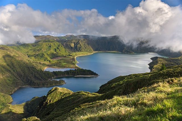 Situé dans l’Atlantique nord, l’archipel des Açores, d’origine volcanique, offre une végétation luxuriante et colorée. Ce chapelet de 9 îles encore peu connues, possède un charme authentique et une nature préservée. Parmi ces îles, souvent considérée comme la plus belle, Sao Miguel est une incontournable. Elle offre un patchwork de paysages bucoliques : lacs de cratère, bassins d’eaux thermales au cœur des forêts luxuriante, pâturages bordés d’azalées et d’hortensias, volcanisme actif, villages aux maisons blanches où trônent des églises baroques : bienvenus dans un Portugal d’outre-mer authentique et préservé.