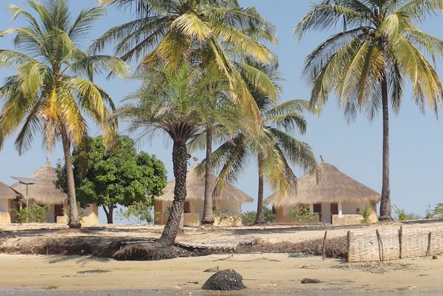 Route jusqu’à Tendouck avant d’embarquer en pirogue sur le fleuve Casamance, parfois escorté par des dauphins. Débarquement à Djiramaete, puis vélo vers Mlomp où l’on découvre un musée et les étonnantes cases à étages. En fin d’après-midi, traversée de passerelles de bois au-dessus des bolongs et arrivée dans la savane de Pointe Saint Georges, territoire des lamantins.
