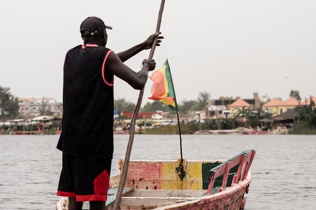 Étape vers la forêt de Kanufa. Pour les curieux, possibilité d’escalader un fromager géant et d’admirer la canopée depuis une plateforme suspendue. Déjeuner au port de pêche d’Elinkine, animé par les allers et venues des pirogues colorées. En fin d’après-midi, courte traversée en pirogue vers l’île d’Egueye, petit écrin de verdure au milieu des bolongs.