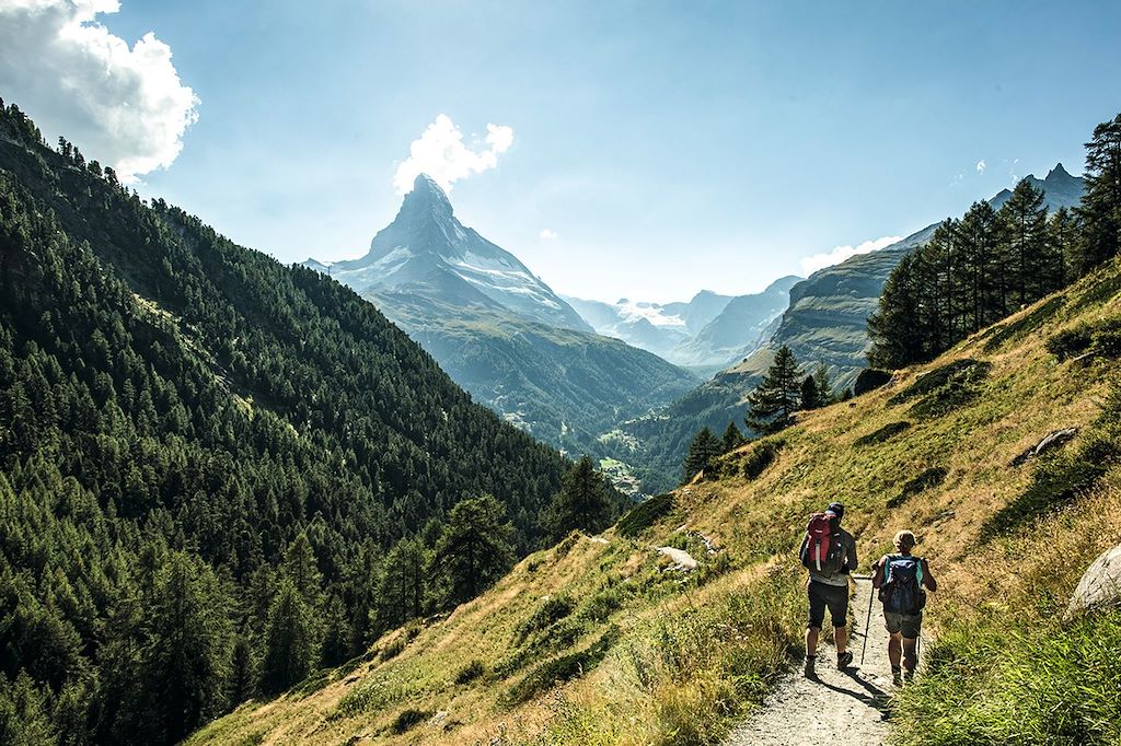 La journée démarre en empruntant les remontées mécaniques du Matterhorn Paradise. Traversée majestueuse entre les sommets mythiques du Mont Rose au Cervin, avec une pause au Klein Matterhorn, à 3883m ! Court transfert jusqu'à Schwarzsee et la randonnée se poursuit au pied de l'imposante face Nord du Cervin, en traversant les villages traditionnels de Biel, Zmutt et Hubel, jusqu'à Zermatt.