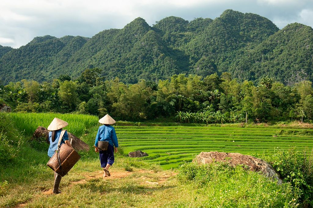 Ce voyage de randonnée nous entraîne dans les montagnes et vallées secrètes du Tonkin, sur un itinéraire original mêlant sites incontournables et étapes exclusives, loin des foules. Dans les hauts plateaux de Moc Chau et Pa Co, nous marchons à travers rizières en terrasses, forêts luxuriantes et pitons karstiques à la rencontre des ethnies. Chaque étape s’ouvre sur la vie locale : nuits chez l’habitant, repas partagés et sourires échangés rythment la marche. Le voyage se poursuit à Tam Coc, où les barques glissent entre les reliefs calcaires, avant de s’achever sur les eaux émeraude de la mythique baie d’Halong. Fruit de nos repérages et de nos liens avec les habitants, cet itinéraire hors des sentiers battus célèbre la beauté brute et la chaleur humaine d’un Vietnam authentique et vivant.